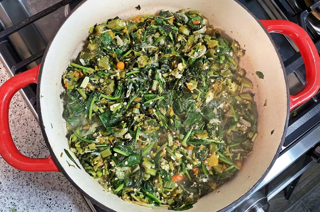 Ever since making and sharing the recipe for the Stuffed Grilled Snapper, I knew this recipe can be a success with vegans, vegetarians and people who comply with an Ital meals path. A fast and attractive stew made with pumpkin, spinach, Jamaican callaloo (Chorai bhagi) and okra.