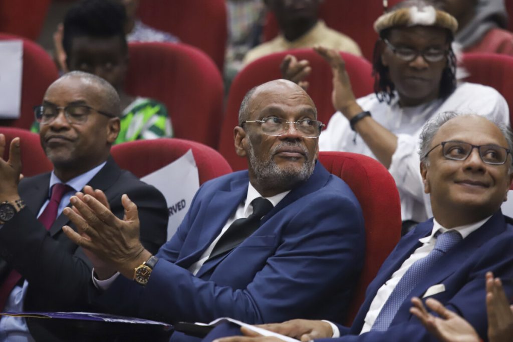 ARCHIVO – El primer ministro de Haití, Ariel Henry, asiste a un discurso en la Universidad Internacional de Estados Unidos en Nairobi, Kenia, el 1 de marzo de 2024. El primer ministro viajó a Kenia para impulsar un despliegue respaldado por Naciones Unidas de policías del país africano para combatir a las pandillas en Haití. Henry, que enfrenta peticiones de que renuncie o forme un consejo de transición, no ha podido regresar a su país. (AP Foto/Andrew Kasuku, Archivo)