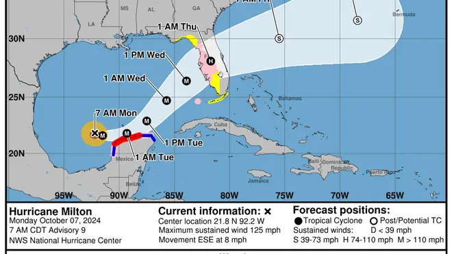“These islands have already skilled extreme rainfall since Sunday from one other storm system; and so, the bottom is already saturated with water. Heavy rainfall has additionally been skilled on different islands in current days, particularly on Andros, The Berry Islands, New Windfall and Eleuthera. Now the rainfall from Hurricane Milton is predicted to accentuate, particularly on Wednesday.”
