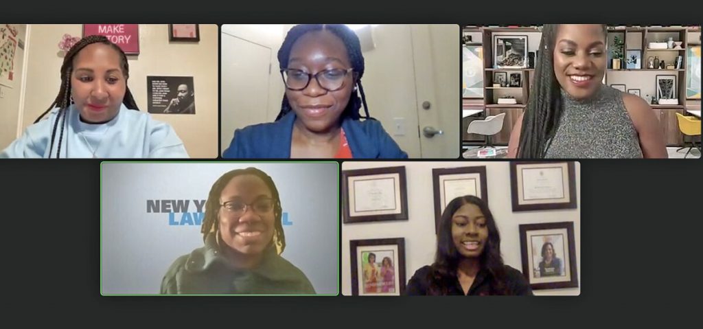 From high left, Rasheera Dopson, Lauren Proby, Ola Ojewumi, Britney Wilson (backside left), and Nichelle N. Prepare dinner, in the course of the digital panel moderated by LaurenProby on Jan. 22.