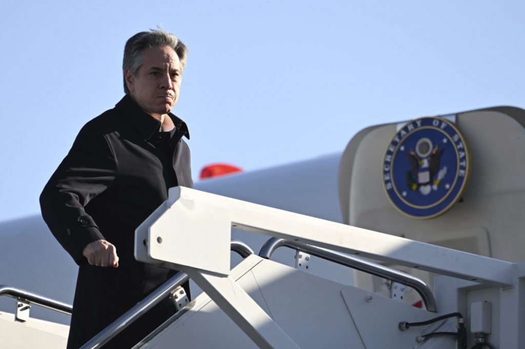 Secretary of State Antony Blinken boards a aircraft, Monday, March 11, 2024, at Andrews Air Power Base, Md., en path to Kingston, Jamaica for emergency talks with Caribbean leaders on Haiti’s disaster. (Andrew Caballero-Reynolds/Pool by way of AP)