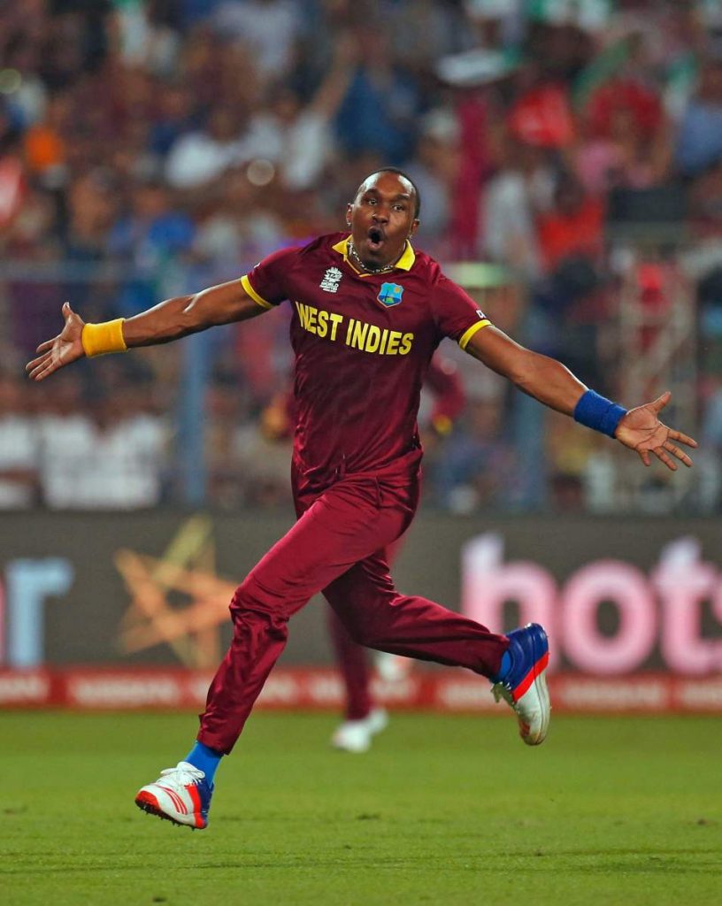 West Indies Dwayne Bravo celebrates taking the wicket of England’s Moeen Ali through the World Twenty20 cricket event remaining in Kolkata, India in 2016.