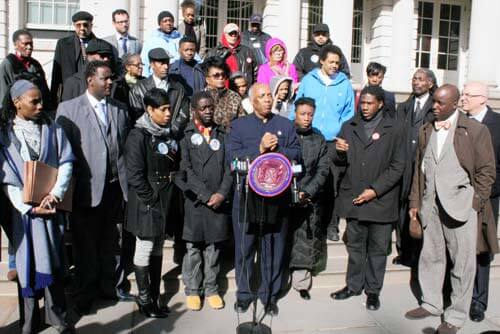 Councilman Charles Barron talking on the solidarity press convention and rally on the steps of Metropolis Corridor.