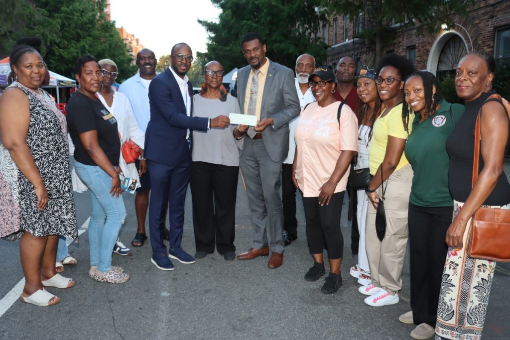 Flanked by parishioners, St. Vincent and the Grenadines Consul Normal to the USA Rondy “Luta” McIntosh, and members of the Brooklyn-based SVG Aid USA, Inc., Pastor Straker offered a verify, on Nationwide Night time Out, on Tuesday at East 53rd Avenue in Brooklyn, to Verna Arthur, president of SVG Aid USA, Inc.