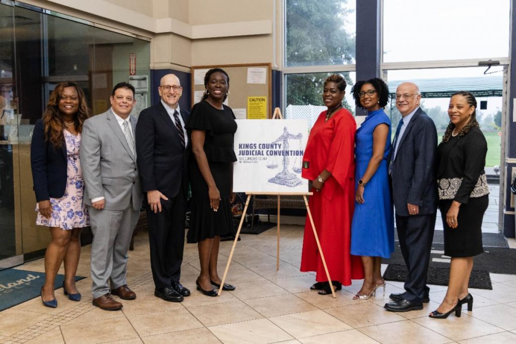 Brooklyn Democratic Occasion Chair Assemblywoman Rodneyse Bichotte Hermelyn, left, with Judicial nominees: Hon. Keisha Alleyne, Hon. Inga O’Neale, Hon. Christopher Robles, Hon. Adam D. Perlmutter, Hon. Lisa Lewis, Hon. Jeffrey Sunshine, and Hon. Sharen Hudson.