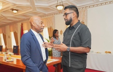 GEORGETOWN, Guyana, CMC – President Dr. Irfaan Ali Saturday held talks with the president of the Barbados-based Caribbean Growth Financial institution (CDB), Dr. Hyginus Leon, on strengthening the position of the Area’s premier monetary establishment.