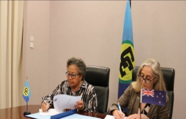 CARICOM Secretary-Basic Dr. Carla Barnett and the brand new Plenipotentiary Consultant of New Zealand to CARICOM, Linda Charlotte Te Puni, signed the grant funding settlement