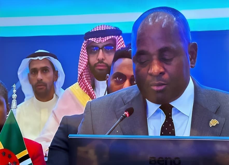 CARICOM Chairperson Roosevelt Skerrit landed on the Riyadh Airport on Thursday morning after attending a summit in Morocco. He was welcomed by Prince Mohammed bin Abdurrahman bin Abdulaziz, the deputy governor of the Riyadh area, at King Khalid Worldwide Airport.
