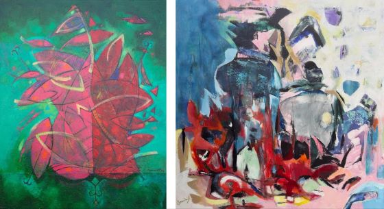 Artworks from L’union Fait La Power exhibit at Island SPACE Caribbean Museum. Home by Garry Laurent (left) and Father and Son by Dominique Ambroise.