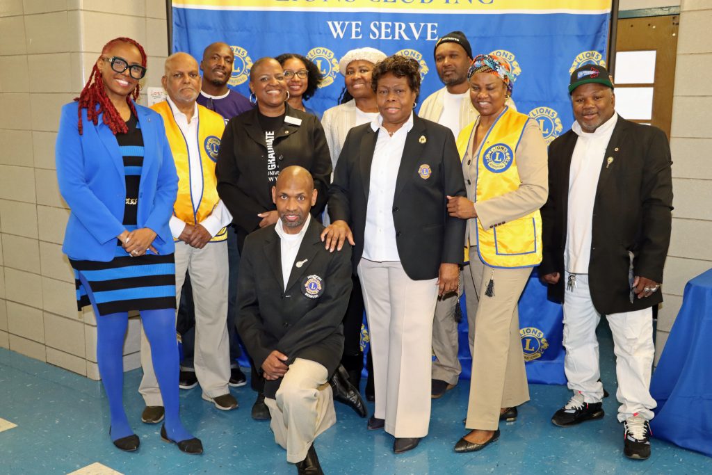 Dr. Lisa Millsaps-Graham, third from left, entrance row, and Brooklyn Canarsie Lions Membership President Jean Joseph, fourth from left, and Brooklyn Canarsie Lions.