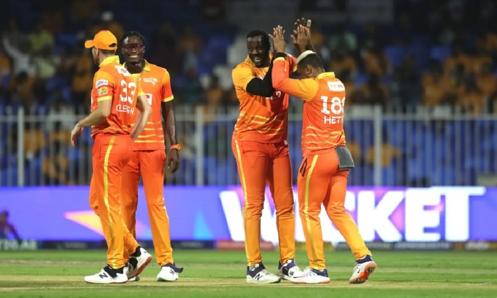 Raza eliminated hometown boy Usman Khan for 14 and West Indies left-hander Shimron Hetmyer for a second-ball duck earlier than van der Merwe added the scalps of Brathwaite and Barbados-born England all-rounder Chris Jordan for one and a first-ball duck, respectively.