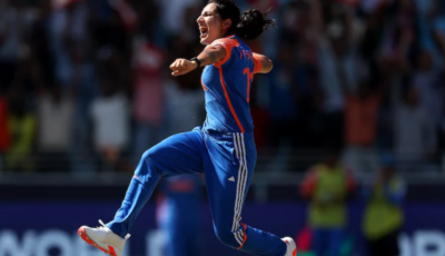 Following her dismissal, Harleen Deol scored 44, captain Harmanpreet Kaur made 34, Richa Ghosh added 26, and Jemimah Rodrigues blasted 31 from 19 deliveries to assist bolster India’s innings.