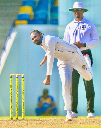 Roach dismissed Johann Jeremiah, Kalvin Marcus, and Matthew Forde, who accounted for first-inning century-maker Damel Evelyn for 18, to limit CCC to 54 for 3.