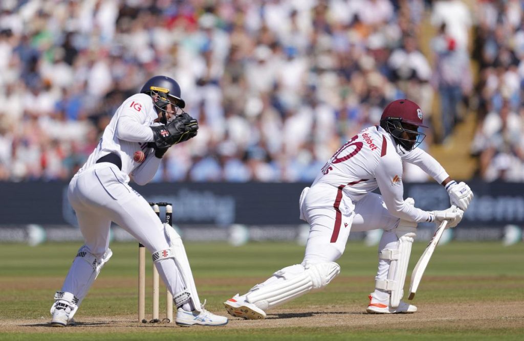 Brathwaite and fellow opener Mikyle Louis received by way of a testing first hour and shared 76 for the primary wicket. Nonetheless, Atkinson eliminated Louis and left-hander Alick Athanaze; Wooden claimed Kirk McKenzie, and West Indies wobbled to 97 for 3 on the interval.