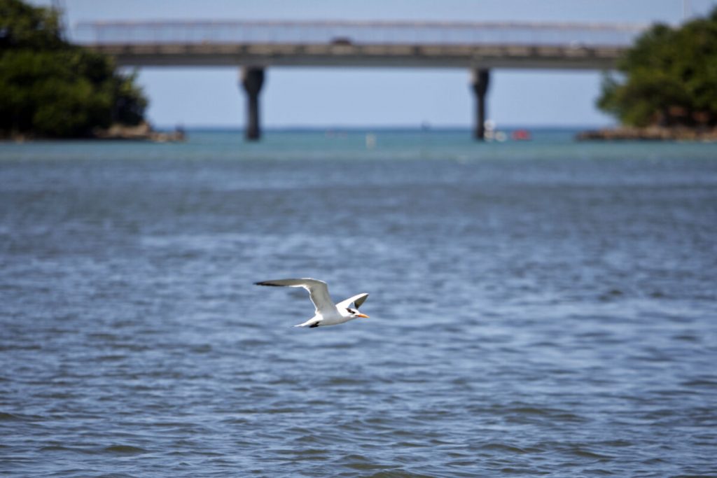 FILE – A fowl flies over the San Juan Bay Estuary in San Juan, Puerto Rico, Oct. 26, 2013. A $62 million mission to dredge Puerto Rico’s largest and most essential seaport started Wednesday, April 3, 2024 amid fierce opposition from environmentalists. Crews will take away almost 3 million cubic yards of marine ground to open the San Juan Bay to bigger vessels together with tankers that may serve a brand new liquid pure gasoline terminal on Puerto Rico’s north coast. (AP Photograph/Ricardo Arduengo, File)