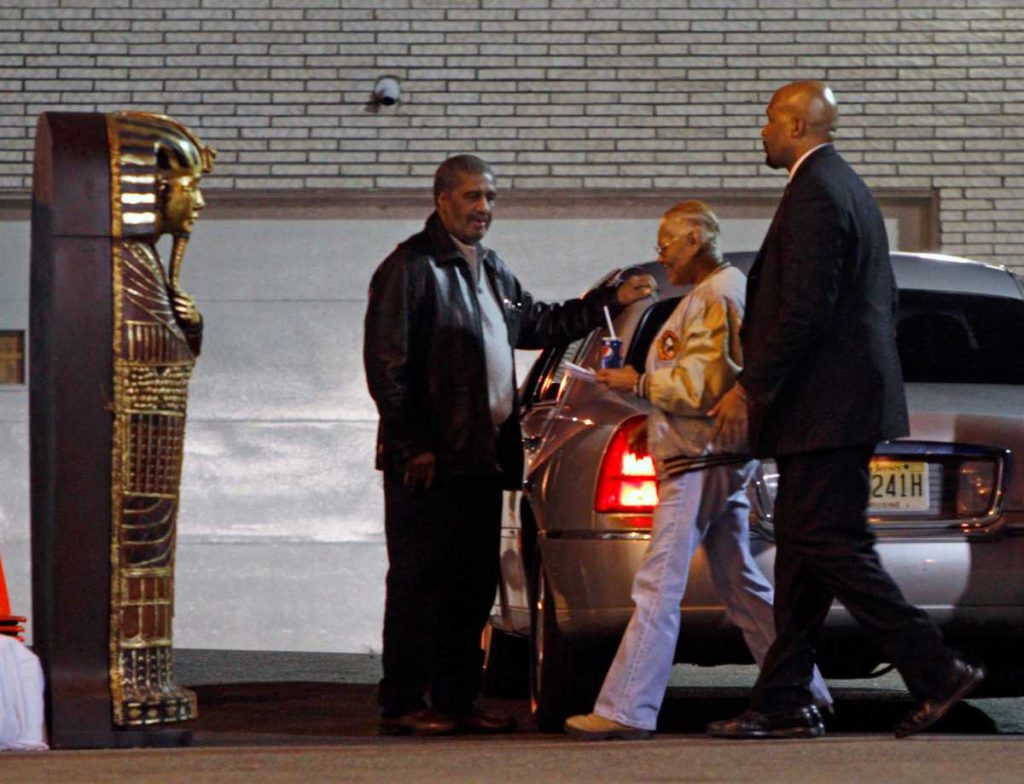 Singer Dione Warwick (C) arrives on the Whigham Funeral Residence the place individuals are attending Whitney Houston’s visitation earlier than the funeral Feb. 17, 2012.