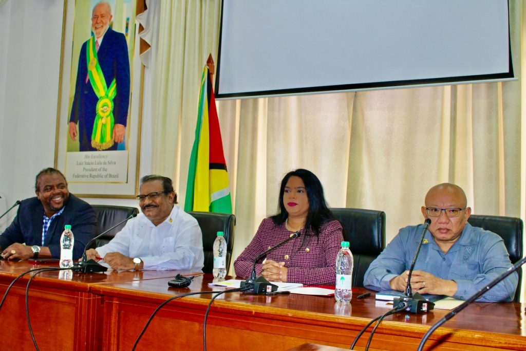 Throughout an finish of 12 months press convention by the Ministry of Native Authorities and Regional Growth, it was disclosed that the King Charles Basis UK, will associate with Georgetown to revive the metropolis. Pictured from left are, Chief Planning Officer, Roger Rogers, Minister throughout the Ministry Anand Persaud, Minister of Native Authorities and Regional Growth Sonia Parag, and one other official of the ministry.