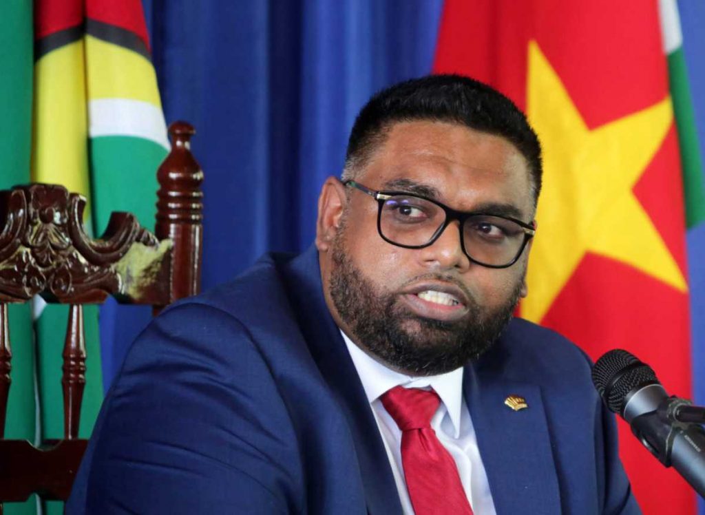 Guyana’s President Irfaan Ali addresses the media throughout a joint information convention with Suriname’s President Chandrikapersad Santokhi (not pictured), Nov. 24, 2020.