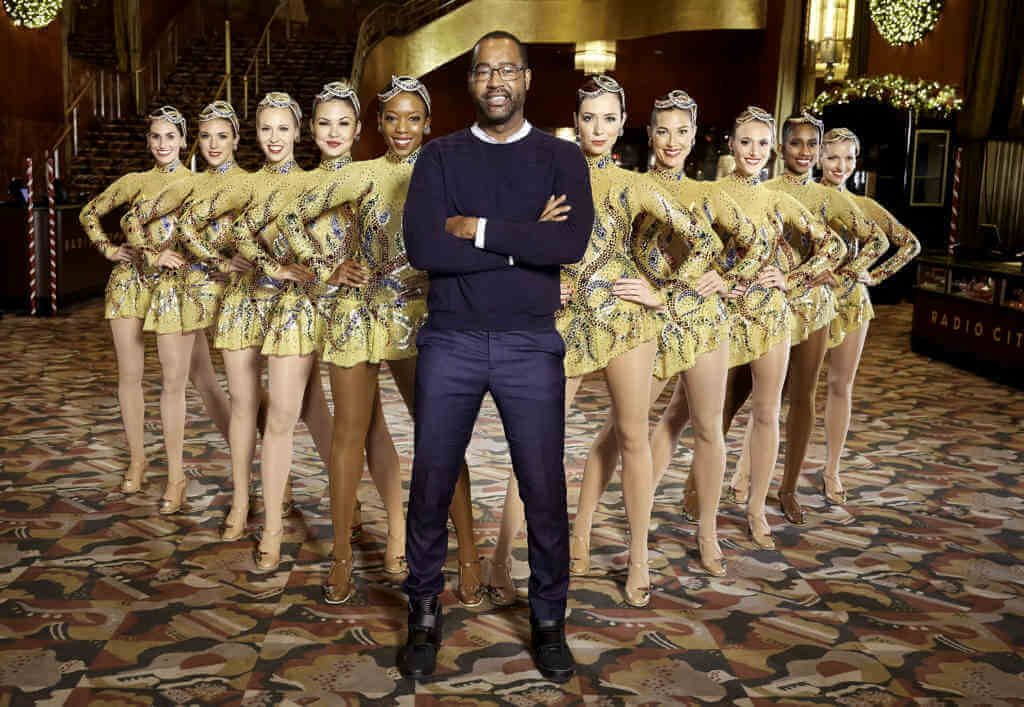 Costume designer Emilio Sosa pose with Rockettes within the new costume for the 2018 Radio Metropolis Christmas Spectacular.