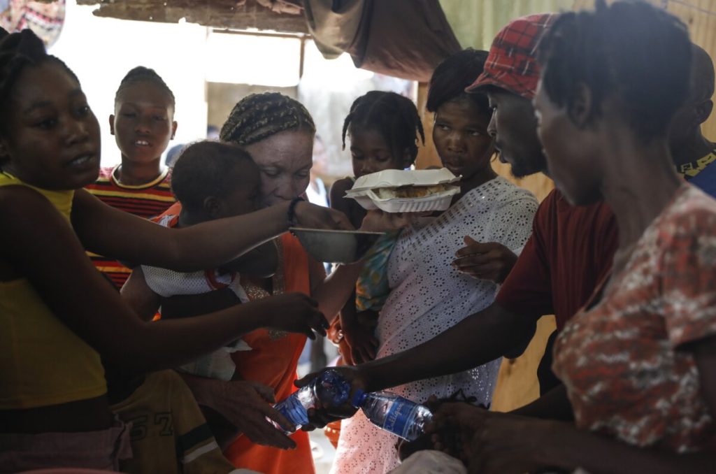 Girls scuffle for plates of meals for his or her youngsters at a shelter for households displaced by gang violence, in Port-au-Prince, Haiti, Friday, March 22, 2024. (AP Picture/Odelyn Joseph)