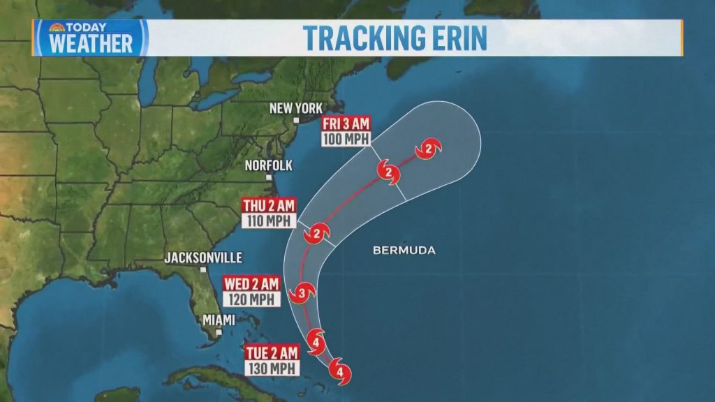 Based on the US-based Nationwide Hurricane Heart (NHC), Erin’s heart is predicted to go east of the Bahamas on Tuesday earlier than shifting north between Bermuda and the US East Coast on Wednesday and Thursday. The storm is predicted to be off the Florida-Georgia border at 2:00 a.m. EDT Wednesday and parallel to the North Carolina coast by 2:00 a.m. EDT Thursday.