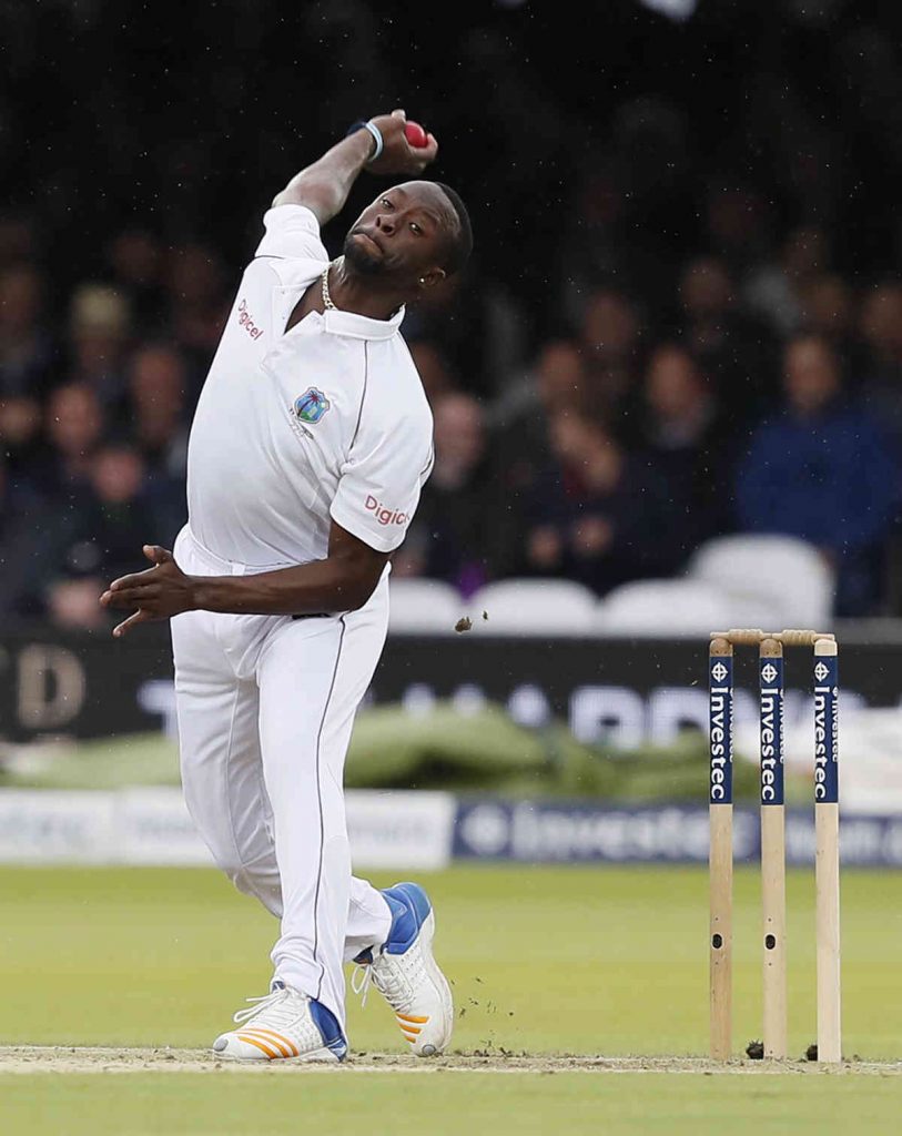 West Indies, Kemar Roach bowls on the second day of the third take a look at match between England and the West Indies at Lord’s cricket floor in London.