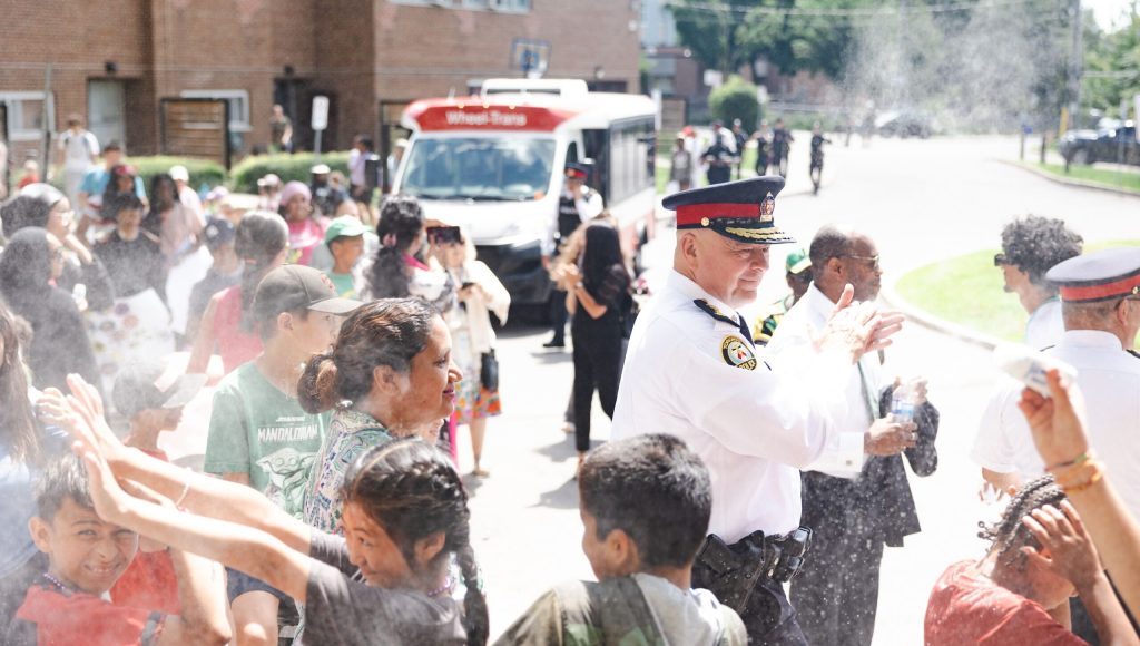 Chief Myron Demkiw was joined by Toronto Police Service Board Chair Ann Morgan, in addition to dignitaries and members of neighborhood organizations, who addressed the media and the kids. The occasion was emceed by tv host Akil Augustine.