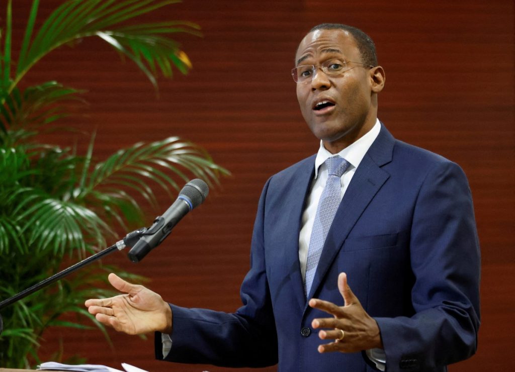 Jamaica’s Minister of Finance and the Public Service Nigel Clarke addresses the viewers throughout a information convention on the alleged fraudulent actions of Kingston-based Shares and Securities Ltd (SSL), in Kingston, Jamaica January 23, 2023.