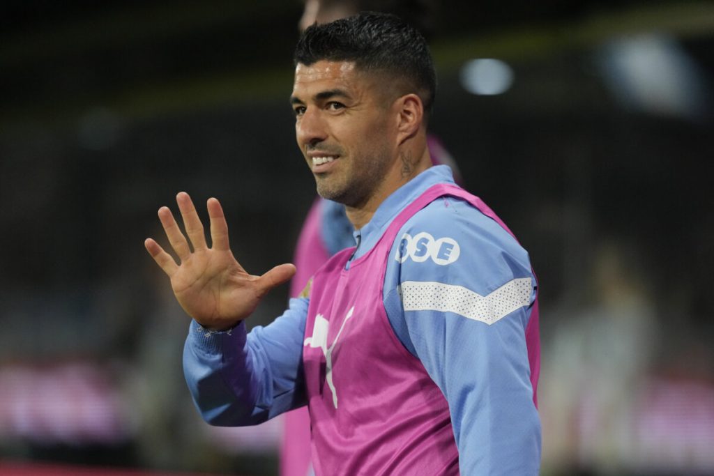 Uruguay’s Luis Suarez waves from the bench throughout a qualifying soccer match for the FIFA World Cup 2026 in opposition to Argentina at La Bombonera stadium in Buenos Aires, Argentina, Nov. 16, 2023. The 37-year-old Suárez scored 17 targets for Brazilian league runner-up Gremio, Wednesday, Dec. 6, 2023.