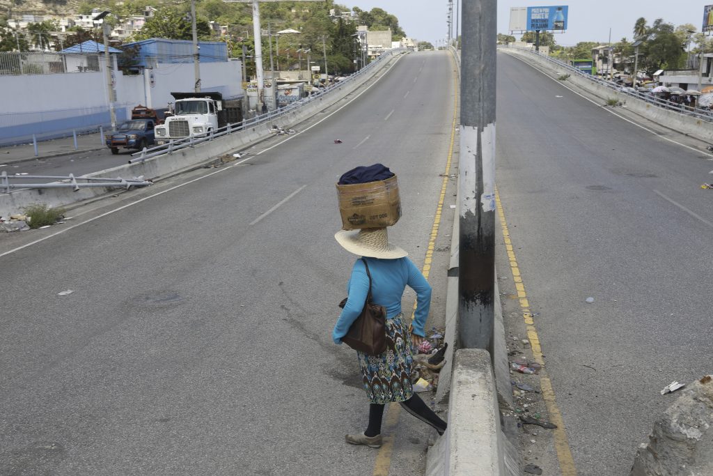 A road vendor crosses a road that’s empty resulting from residents staying residence amid gang violence in Port-au-Prince, Haiti, Monday, April 8, 2024. (AP Picture/Odelyn Joseph)