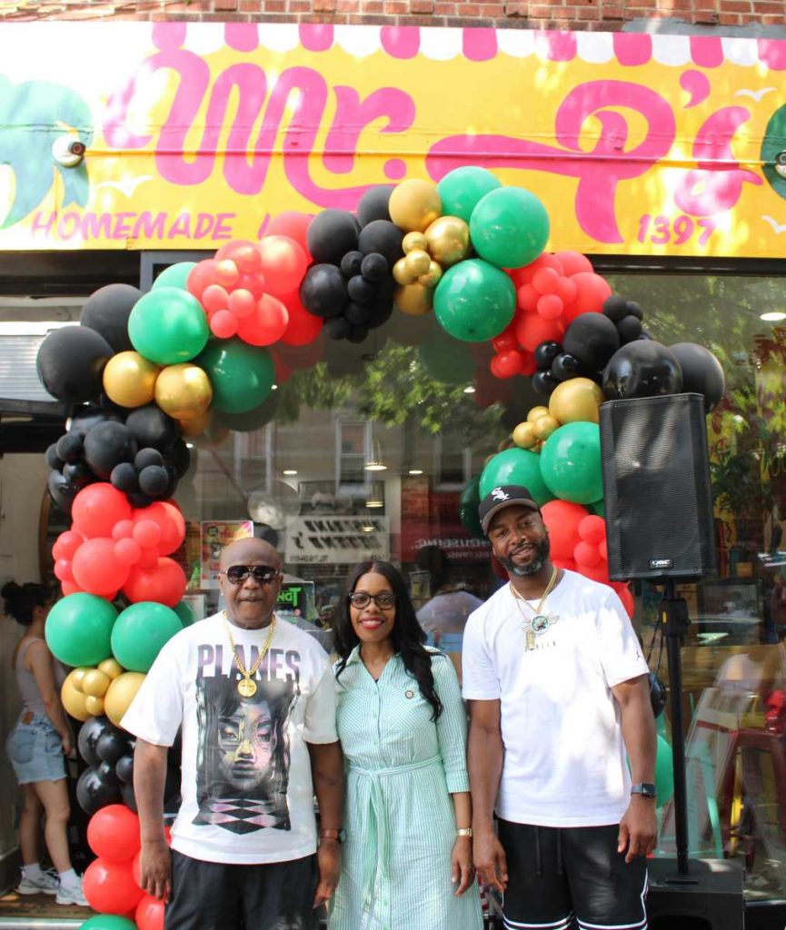 From left, Patrick Victor, proprietor of Mr. P’s Home made Ice Cream store, NYC Councilmember Rita Joseph,District 40, and a supporter in entrance of the 1397 Nostrand Ave., Brooklyn colourful facade on Juneteenth, June 19, the place scores of free scoops had been shared within the Little Caribbean neighborhood.