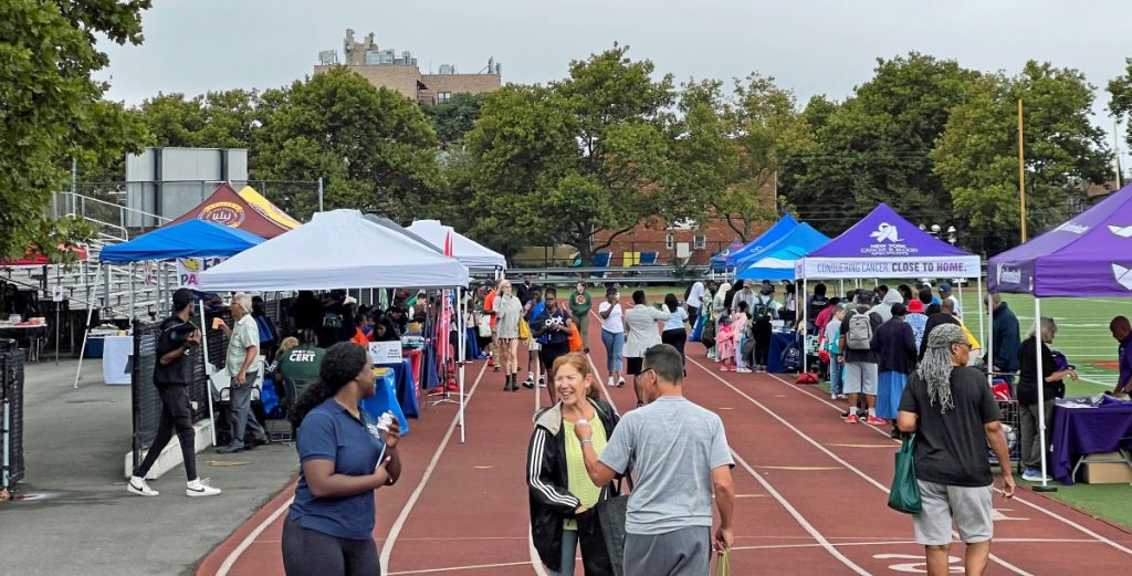 Stalls on the Stalls on the Again to Faculty Well being Truthful and Backpack Giveaway on Saturday on the South Shore Excessive Faculty Area in Canarsie, Brooklyn.