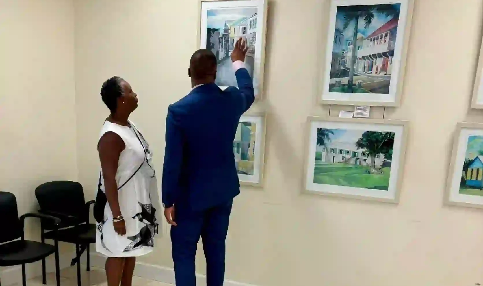Nevis: The Authorities workplace within the Social Safety Constructing at Pinneys is honed by the work of famend artist Howard Ache. The work are displayed from the artist’s extensively anticipated e-book ‘Historic Charlestown’.
