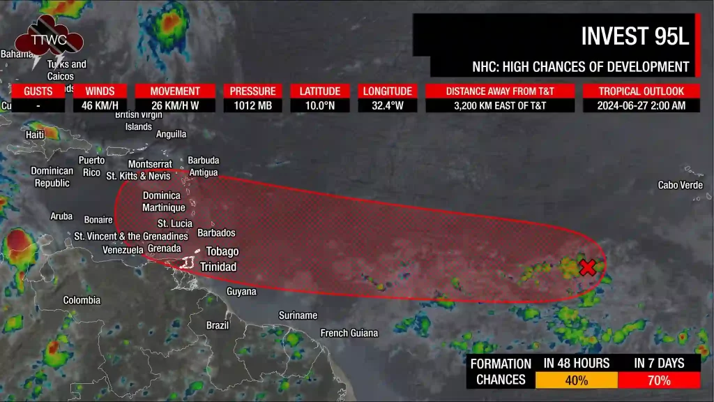 The Nationwide Hurricane Centre introduced that there’s nonetheless a excessive probability of the formation of a tropical cyclone over the subsequent seven days which is predicted to deliver disturbance throughout the area. The areas akin to Trinidad and Tobago, Barbados, Grenada, St Vincent and the Grenadines, Antigua and Barbuda, and Saint Lucia are underneath the radar of the disturbance within the system.