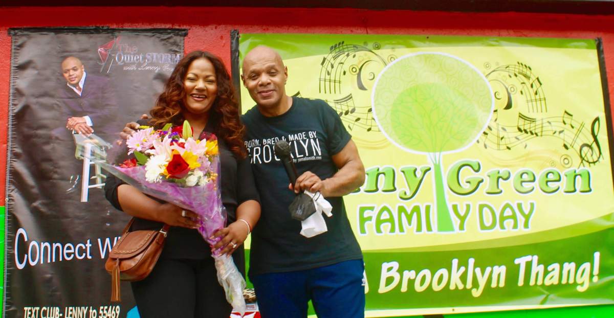 Neighborhood Award recipient, Jamie Williams Meeting member for the 59th district, with Lenny Inexperienced, host of ‘The Quiet Storm, aired on WBLS 107.5FM.