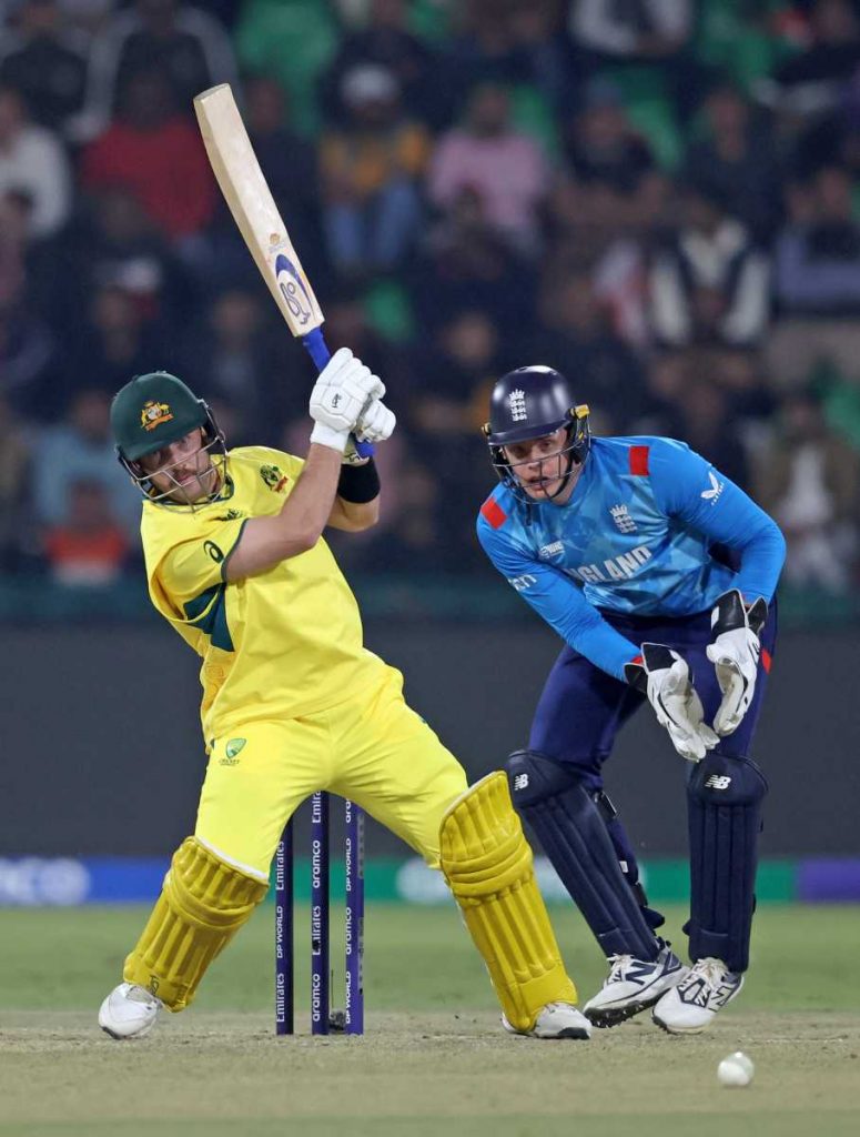 Josh Inglis of Australia performs a shot as Jamie Smith of England retains through the ICC Champions Trophy 2025 match between Australia and England at Gaddafi Stadium on February 22, 2025 in Lahore, Pakistan.