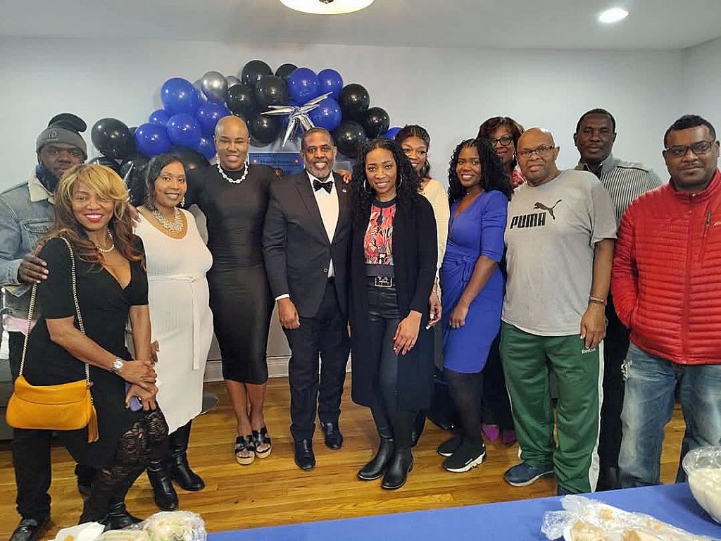 Sen. Kevin Parker, middle, with attendees on the Fireplace Discussion board East at 84th St. in Canarsie, Brooklyn.