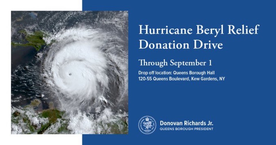 Queens Borough President Donovan Richards Jr. is partnering with native organizations to host a donation drive to help folks impacted by Hurricane Beryl.