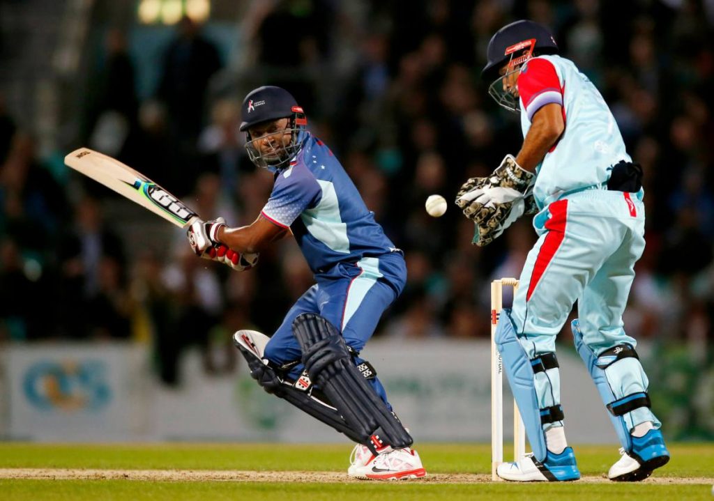 Remainder of the World XI’s Brian Lara in motion throughout a recreation in opposition to Assist for Heroes XI within the Cricket for Heroes T20 Charity Match at The Kia Oval on Sept. 2015.