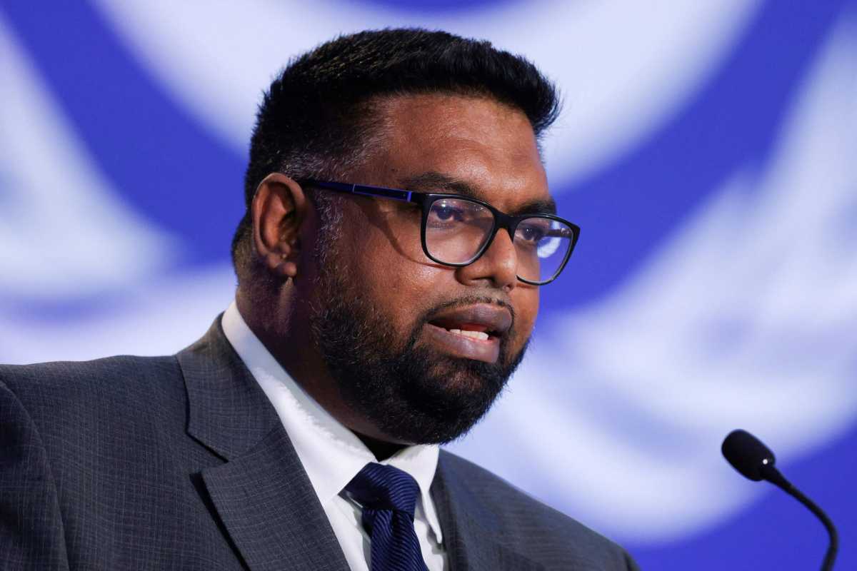 Guyana’s President Mohamed Irfaan Ali speaks throughout the UN Local weather Change Convention (COP26) in Glasgow, Scotland, Britain, Nov. 2, 2021.