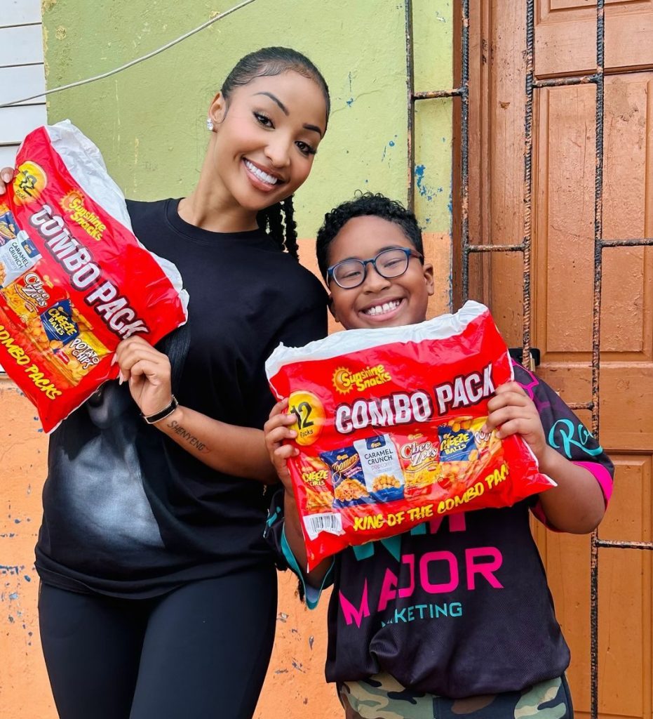 On Saturday, Shenseea shared movies and images on Instagram of her distributing tarpaulins and meals packages to the affected residents. Accompanying her on the journey was her son, Rajeiro Lee.
