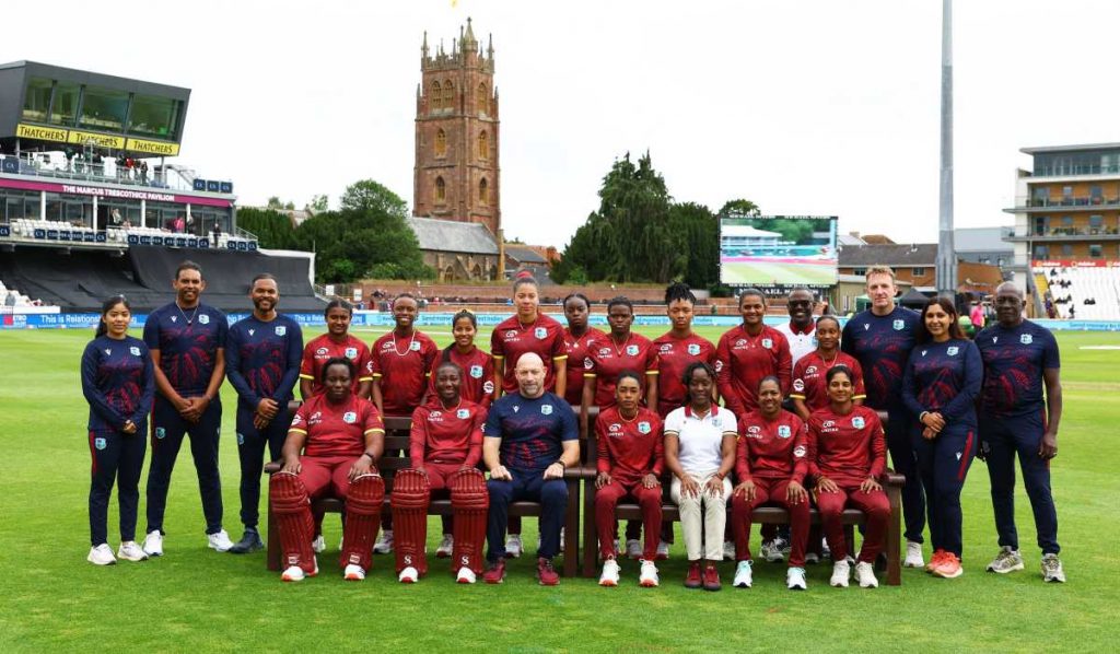 West Indies staff pose for a gaggle photograph earlier than the Third Girls’s One-Day Worldwide match in opposition to England on the Cooper Associates County Floor, Taunton, Britain on June 7, 2025.