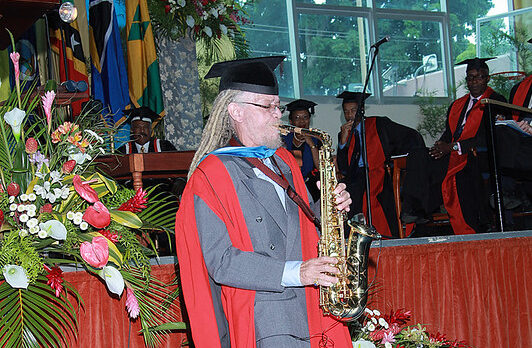 From gracing the stage as a performer to receiving one of many college’s highest honours, his reference to The UWI was a particular one when in 2011, in recognition of his contribution to Caribbean music and tradition, The UWI conferred upon him the diploma of Physician of Letters, honoris causa.