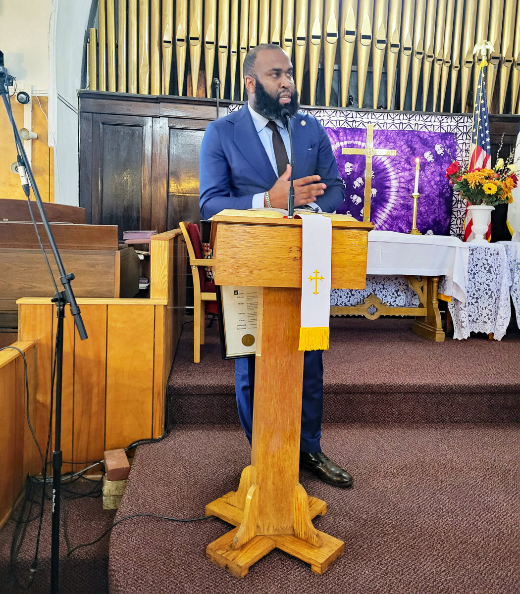 Assemblyman Brian Cunningham addresses congregation at Fenimore Road United Methodist Church on Feb. 4.