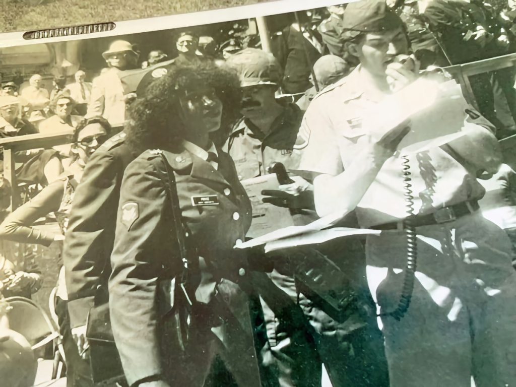 Veterans Day parade alongside Fifth Ave. Circa 1980. Deceased SSG. James Cantwell is at proper.