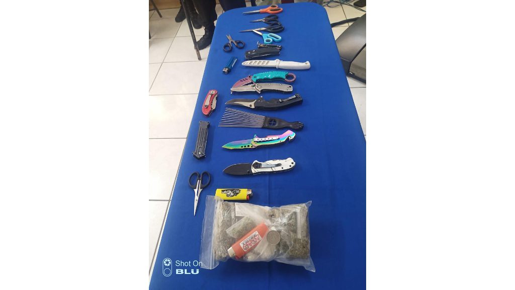 These included knives, scissors, a psychological Afro decide comb, and even marijuana.