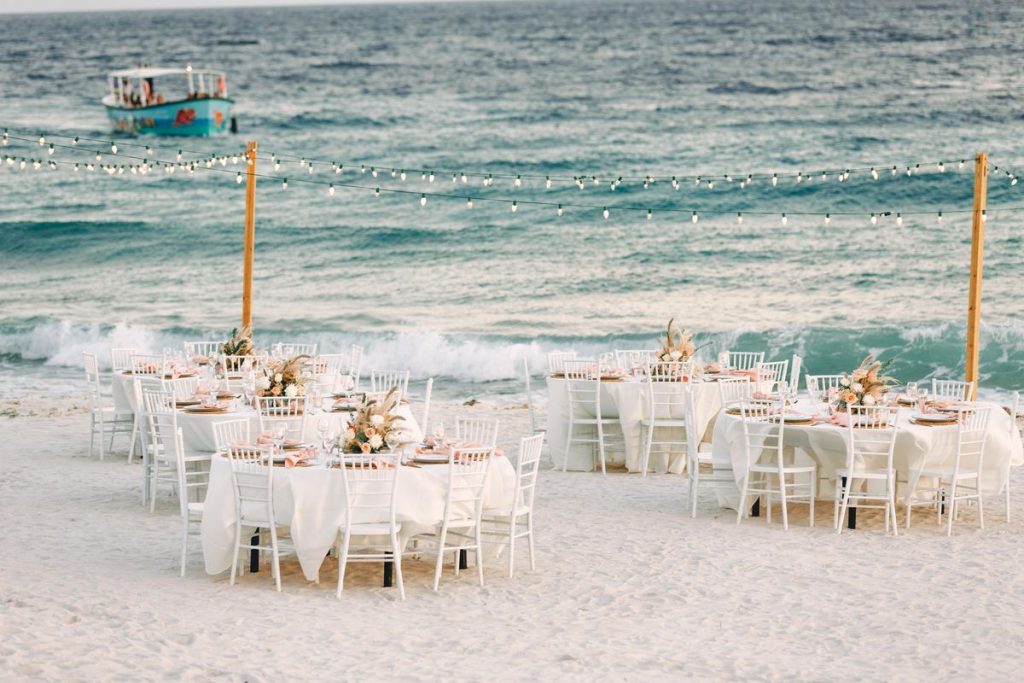 For a wispy, whimsical wedding ceremony design impressed by bohemian model, the Blissful Seashore Wedding ceremony fuses sophistication with eccentricity. This inspiration options pure pampas grass, smooth white and blush tones, and golden accents to create an excellent distinction in opposition to marble blue waters.