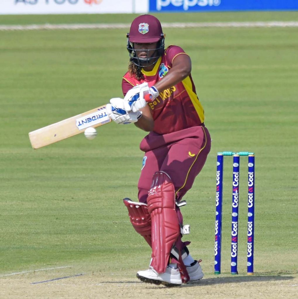 Hayley Matthews of West Indies performs a shot through the first One-Day Worldwide cricket match in opposition to Pakistan on the Nationwide Stadium in Karachi, Pakistan, Monday, Nov. 8, 2021.