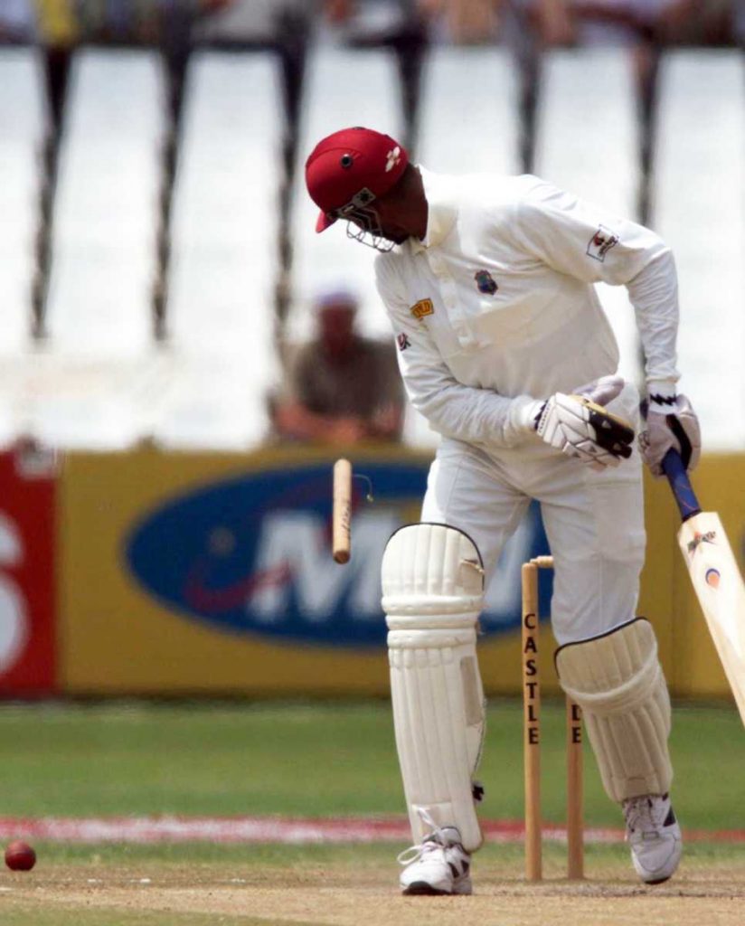 Courntey Walsh seems to be again at his wicket as he’s bowled in the course of the West Indies’ second innings of the third take a look at match on the Kings Mead Cricket grounds in Durban Dec.29, 1998. West Indies had been all out for 259.